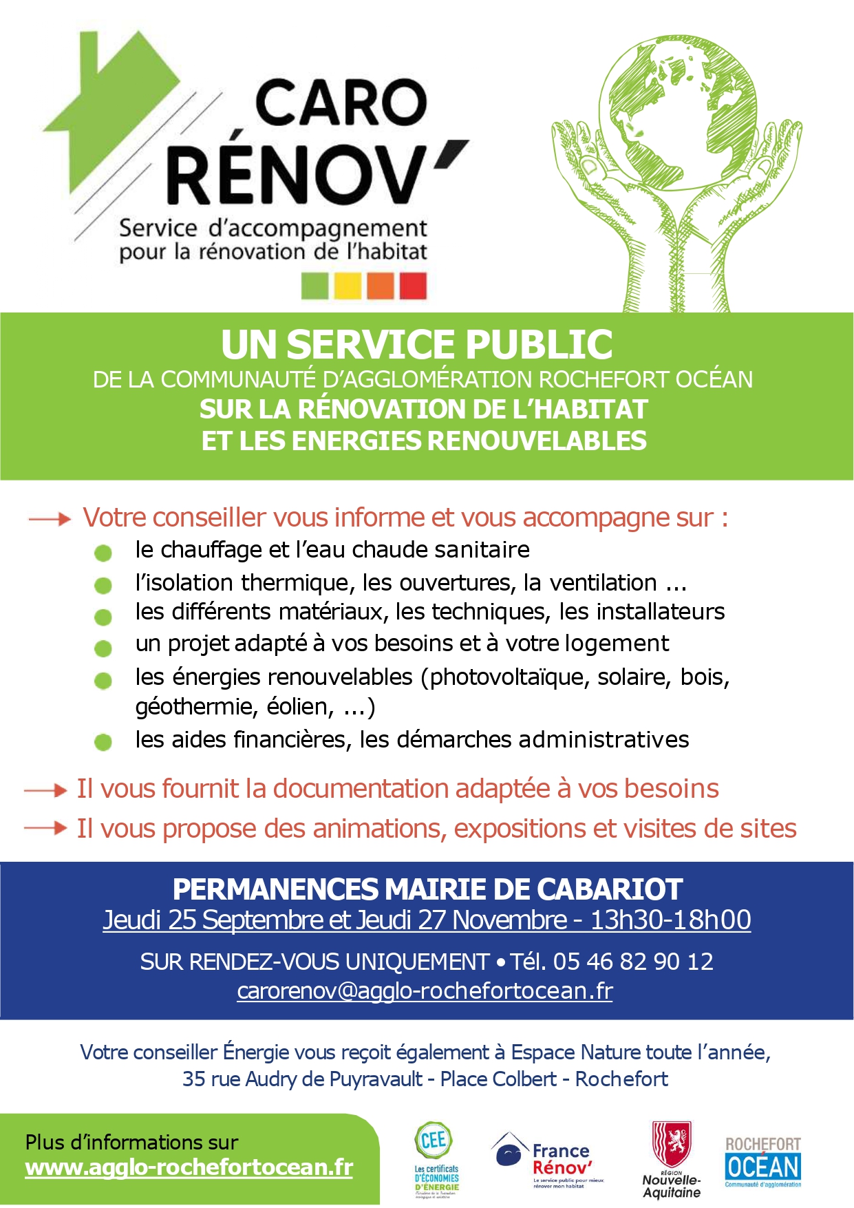 Un service public de la communauté d’agglomération rochefort océan sur la rénovation de l’habitat et les énergies renouvelables.