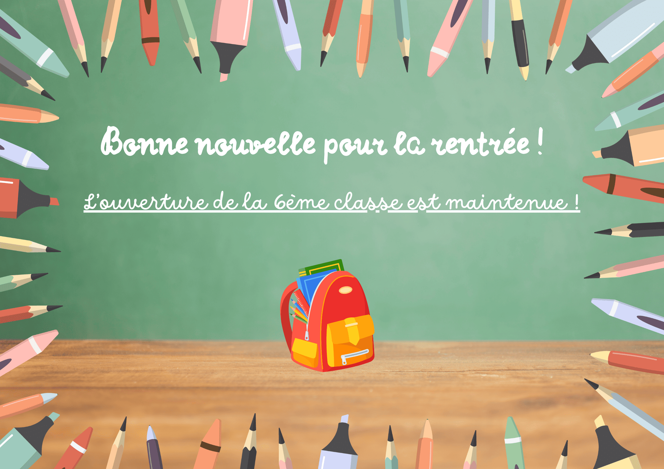La municipalité a le plaisir de vous annoncer que l’ouverture de la 6ème classe à l’école est bien maintenue.
